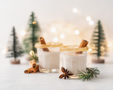 This month’s featured cocktail is the decadent Eggnog Martini, a creamy holiday indulgence that’s perfect for festive gatherings. Crafted with rich eggnog, the smooth sweetness of RumChata, and a nutty hint of